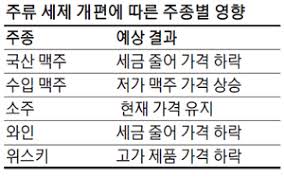 현재 맥주의 경우 종량세로 변경될 예정입니다. 종량세의 경우 술의 양이나 알코올 도수에 따라 세금을 부여하는 방법으로 캔맥주와 수제 맥주는 싸지고, 수제 맥주 가격은 오를 것으로 예상됩니다.